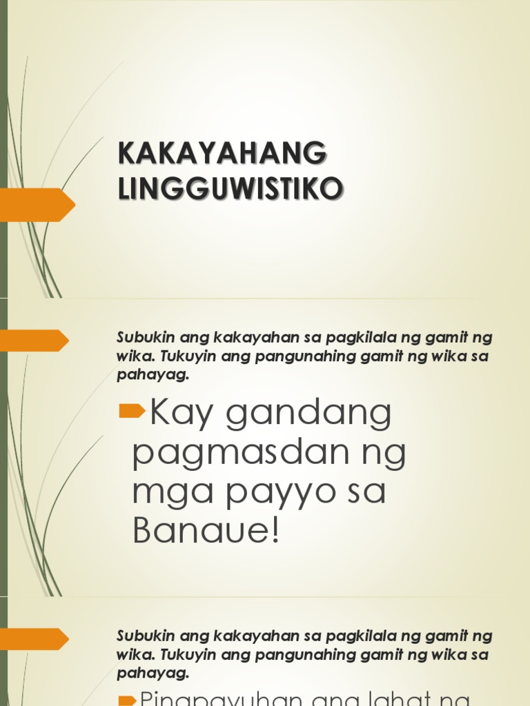 Dell Hathaway Hymes hindi lang dapat kakayahang linggwistika o gramatika para magkaroon ng epektibong pakikipagtalastasan gamit. PAHAYAG NA GINAGAMIT SA PAGBIBIGAY NG OPINYON AT MGA WASTONG GAMIT NG SALITA. Click to expand document information.