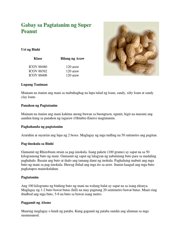 21112009 Peanut Arachis hypogaea Linn locally known as mani is the most widely grown field legume in Region 2. Sundin ang tamang dami nito sa bawat 16-litro sprayer na nakasaad sa label. Ihanda ang kahong punlaan na may tamang sukat.